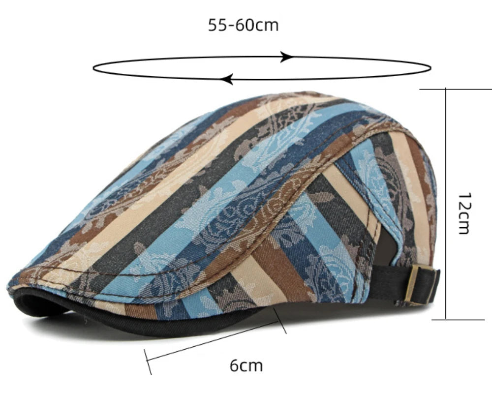 A Boina Oriente traz uma explosão de estilo e originalidade com suas estampas listradas marcantes e cheias de personalidade. Inspirada por ambientes culturais e urbanos que respiram arte e atitude, essa peça é feita para quem gosta de sair do básico e destacar seu visual com elegância descontraída.
